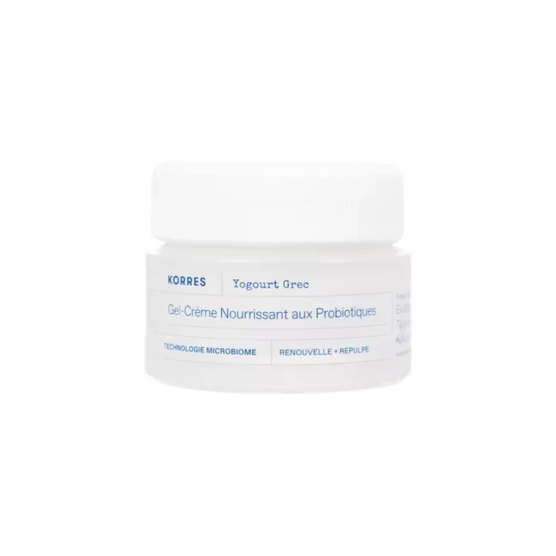 Korres Yaourt Grec Gel-Crème Nourrissant 40 ml est un soin haute performance enrichi en véritable yaourt grec, source naturelle de probiotiques. Il offre une hydratation intense et apaise les peaux normales à mixtes.