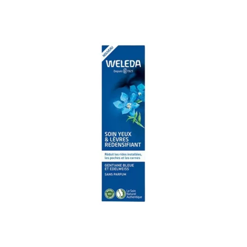 Weleda Soin Yeux & Lèvres Redensifiant Gentiane Bleue et Edelweiss 10 ml est un soin redensifiant associant :